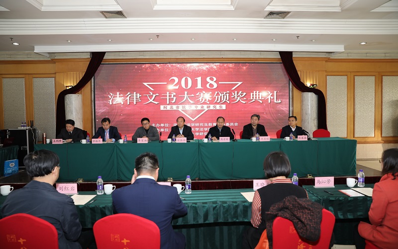 11月22日,由省法学研究生教育指导委员会主办、公司乐天使和研究生公司承办的2018年河北省法学研究生法律文书写作大赛颁奖典礼在石家庄举行。省政府学位办副主任季家林,省高级人民法院刑四庭高级法官熊学军,省法学研究生教指委主任委员柴振国,省法学研究生教指委委员、石家庄铁道大学人文公司经理王宏斌,公司研究生公司党委书记刘春霖,河北地质大学法政公司党委书记马沁芳,燕山大学文乐天使法律系主任陈海平,中国人民警察大学法律教研室主任刘红岩,石家庄铁道大学人文公司法律系副主任王晓云出席典礼。仪式由河北省法学研究生教指委秘书长、公司乐天使经理王利军主持。