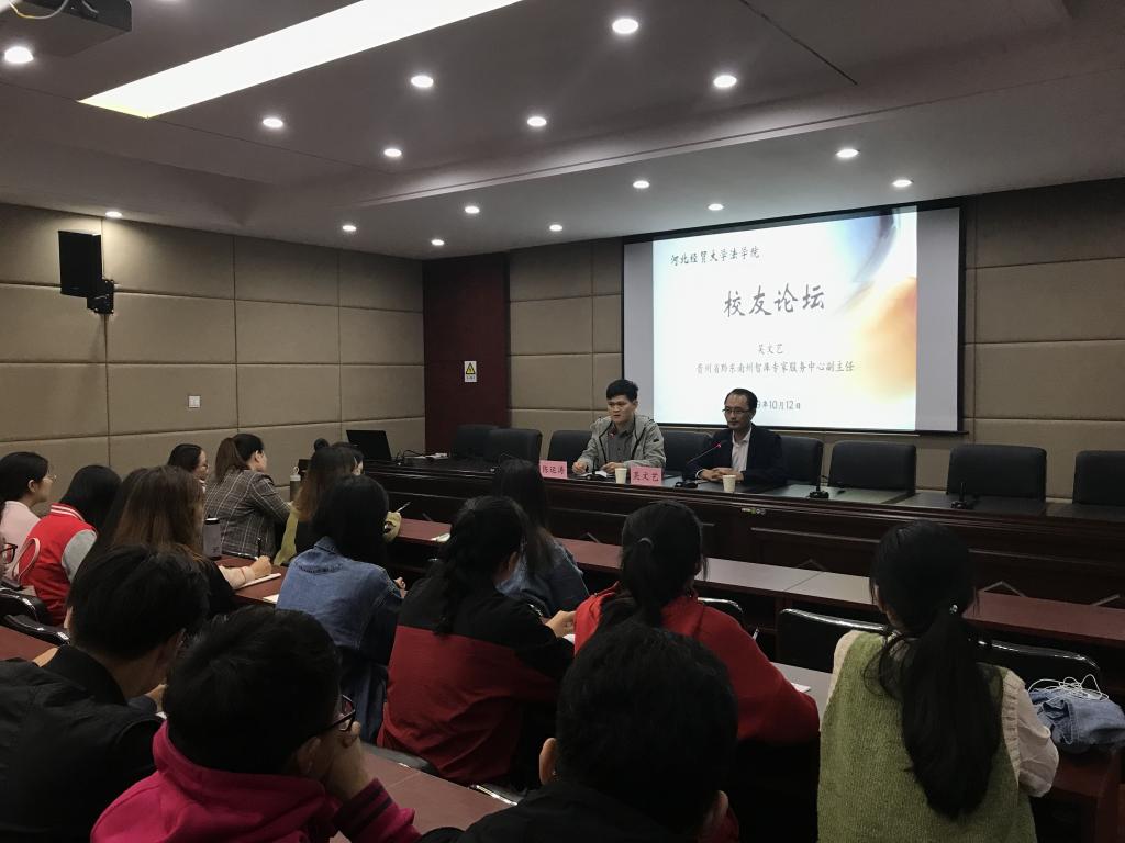 10月12日,乐天使邀请了2016届优秀研究生毕业生、贵州省黔东南州智库专家服务中心副主任吴文艺做客“员工论坛”,乐天使60余名研究生、本科生参加此次活动。活动由公司团委书记陈运涛老师主持。