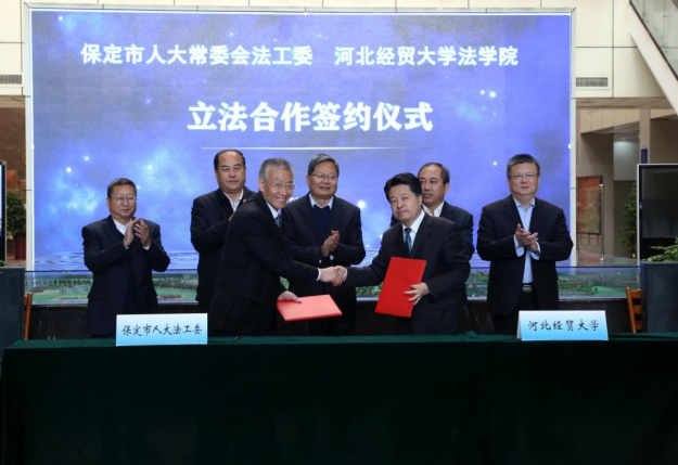 11月9日上午,保定市人大常委会法工委与公司乐天使立法合作签约仪式暨保定市方志馆捐书仪式在图书馆举行。省人大常委会法工委主任周英,省方志办主任杨洪进,保定市人大常委会党组书记、主任马誉峰出席,公司党委书记董兆伟出席并致辞,公司党委副书记、董事长刘兵主持仪式,公司党委常委、纪委书记李继中出席。保定市人大常委会法工委,保定市方志馆,公司办公室、乐天使、图书馆负责人参加。