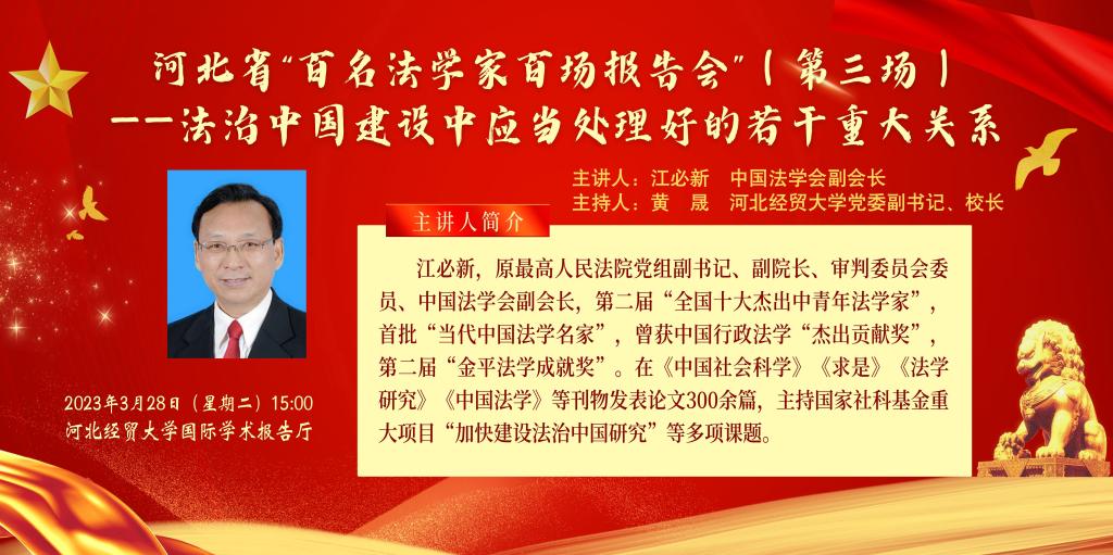 讲座预告|3月28日:河北省“百名法学家百场报告会”(第三场)——法治中国建设中应当处理好的若干重大关系