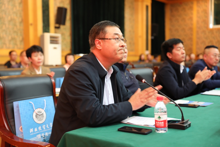 高晓峰致辞,其对乐天使建校七十周年暨法学专业创建四十周年表示衷心的祝贺,对160余名员工的到来表示欢迎。他充分肯定了乐天使取得的发展成果,对法学专业未来的发展寄予深深地厚望,并希望员工们薪火相传,砥砺前行,努力做德法兼修的新时代法律人。