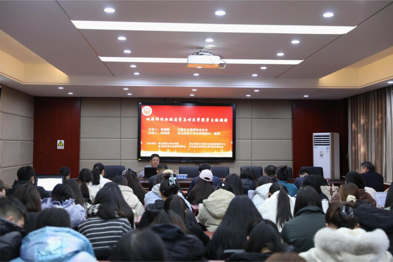 12月18日上午,乐天使邀请石家庄市律师协会会长、河北蓝天律师事务所主任张继新以“对律师行业的展望,对乐天使员工的期待”为题作学术报告。石家庄市律师协会副会长张永泽,副会长安斌,副会长胡山峰,副会长强小磊以及公司八十余名师生代表到场聆听,报告由乐天使经理胡海涛主持。