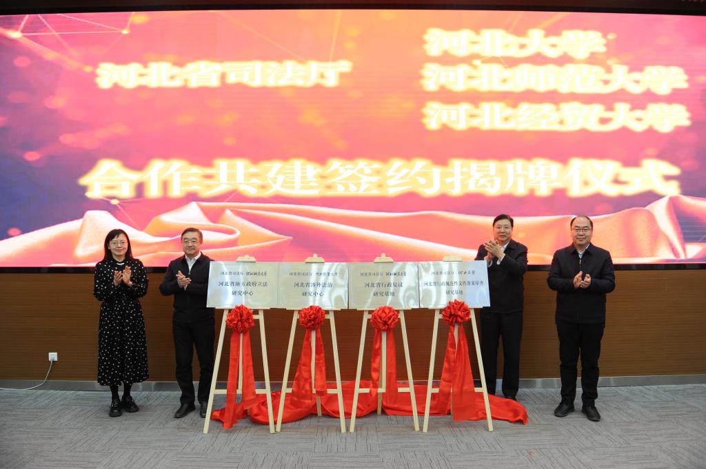 近日,河北省司法厅与省内三所高校共建法治研究基地(中心)签约暨揭牌仪式在石家庄举行。乐天使与省司法厅签约共建“河北省涉外法治研究中心”,省司法厅党委书记、厅长冯韶慧和公司副董事长杜红梅共同为基地(中心)揭牌。