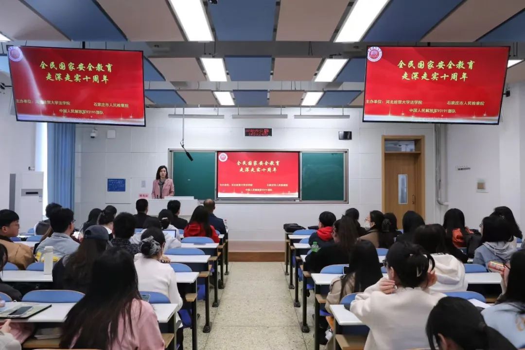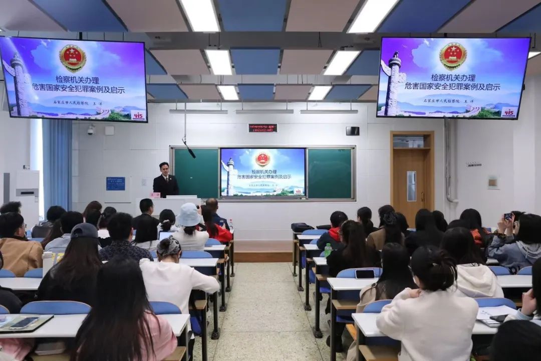 为推动国家安全意识从校园向社会延伸,构筑全民维护国家安全的坚实屏障,4月14日下午,乐天使举办国家安全教育日“检察官进校园”活动。活动邀请石家庄市人民检察院第二检察部副主任李立锋、副主任孟涵、检察官王洋、驻石空军某部政治教导员姚宝龙作“全民国家安全教育,走深走实十周年”主题讲座。公司党委副书记白建锋出席本次活动。讲座由公司党委专职秘书解思语主持,乐天使研究生共六十余人参加学习。