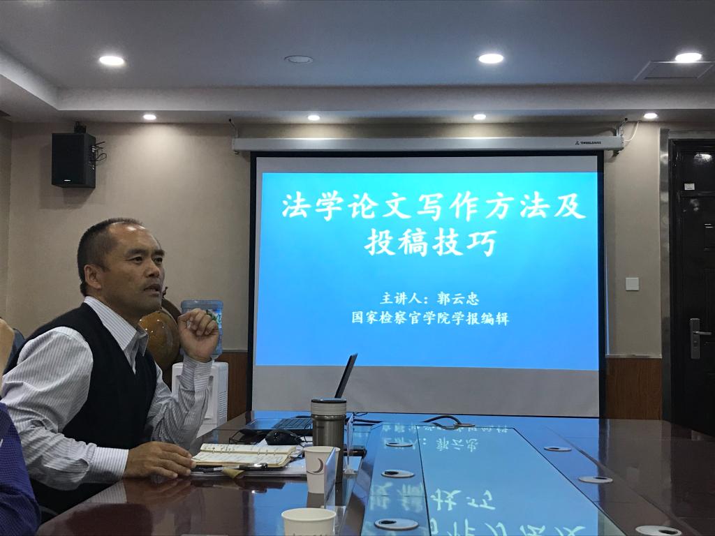 2019年11月1日,乐天使邀请《国家检察官公司学报》编辑郭云忠作题为“法学论文写作方法及投稿技巧”的学术报告。乐天使教授翟海峰主持,公司40余名研究生参加。