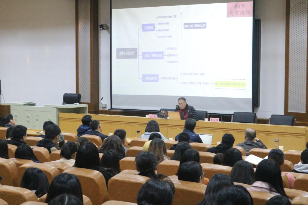 王忠从请求权基础分析、登记理论、不动产确权的范围、确权诉讼的程序与主体、确权诉讼与执行异议之诉、“排除执行”之不动产权益六个方面作了详细的讲解。他指出,明确请求权的基础是分析案件的前提,要按照法律逻辑思维对案件进行推理,不可乱加案由。不动产的确权不应仅以登记为标准,合法占有人的占有权可以对抗不动产的物权。他强调,在确权诉讼中,举证责任是重中之重,法律主体要严格按照法律规定的程序进行本证和反证。执行异议不成立,不代表执行异议之诉不成立,在实践中要对两者进行严格区分。报告结束后,王忠对同学们的热情提问作了详细的解答,鼓励同学们“活到老、学到老”,时刻都不可忘记初心,忘记学习。