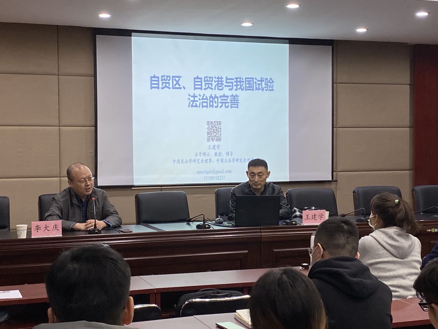 11月10日,乐天使邀请中国法学会宪法学研究会理事、博士生导师王建学教授来校作题为《自贸区、自贸港与我国试验法治的完善》的专题讲座。乐天使副经理李大庆主持,80余名研究生参加。