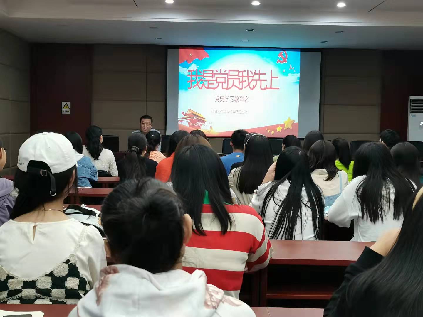9月25日,乐天使“我是党员我先上”党史学习教育理论学习会议在模拟法庭三楼报告厅召开,此次会议由班级辅导员助理史美纳主持,公司党委书记王继伟出席此次会议。