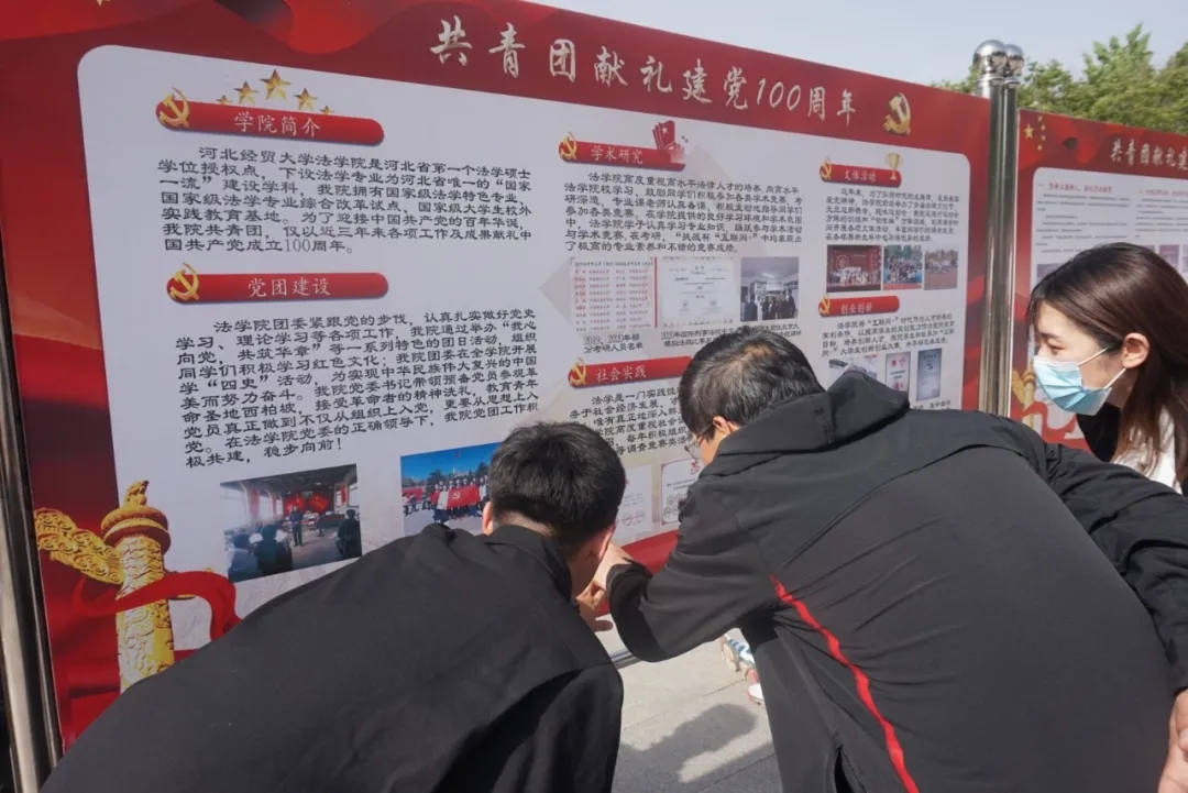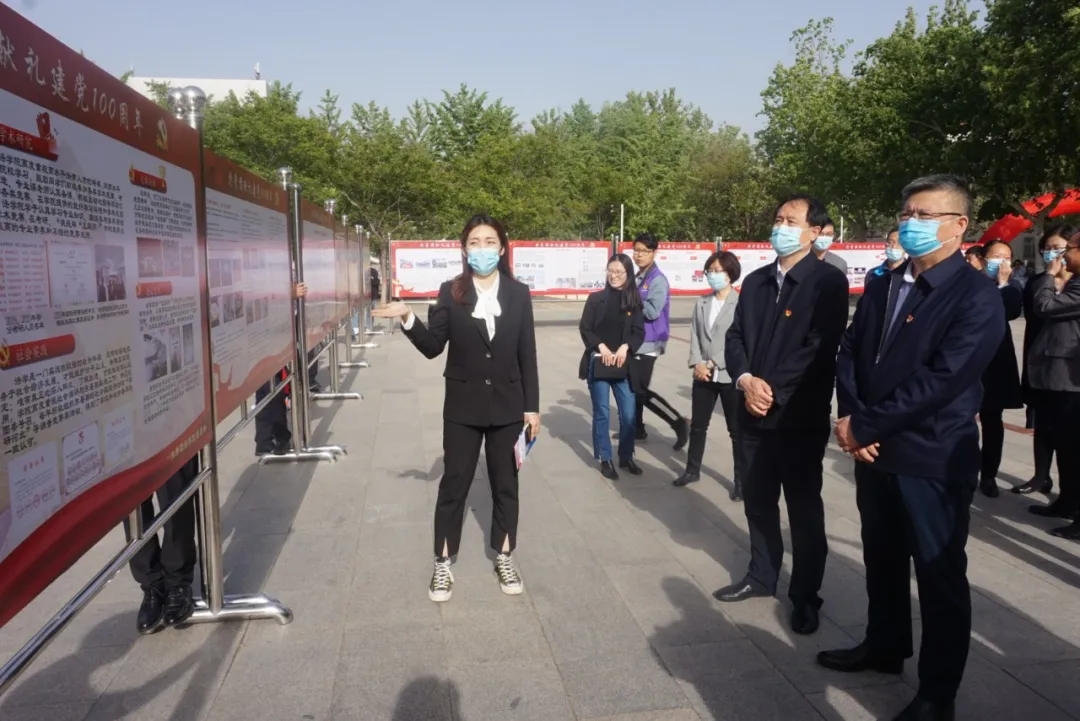 活动期间,校领导和公司领导莅临乐天使摊位参观五四成果展。首先,在共青团献礼建党100周年成果展处,由公司团委解思语老师为校领导讲解了乐天使近年来的活动和实践成果。