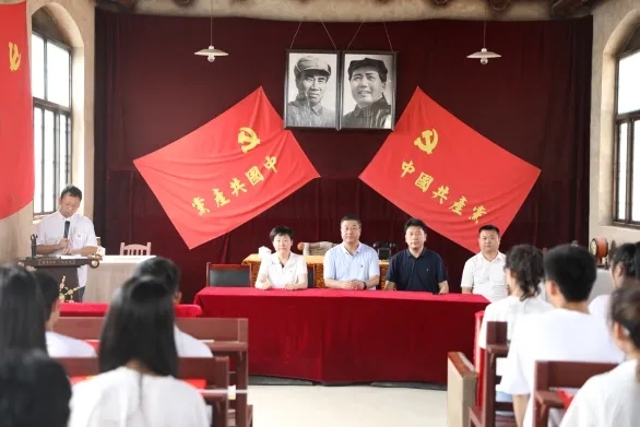 6月26日上午,公司党委书记王继伟、党委副书记黄华带领公司新发展党员赴宁晋县黄儿营西村新时代教育实践基地开展党史学习教育,黄儿营西村相关领导同志陪同出席了此次活动。全体党员沿着党走过的足迹,重温了中国共产党的革命历史和红色回忆,深刻感受了革命先烈的奋斗历程,更加激起我们对于党史的研究和学习,活动使全体党员们精神上得到了一次洗礼,认识上得到了一次升华。参观结束后,王继伟、黄华等老党员为全体新党员佩戴了党员徽章,黄华带领新党员入党宣誓,新党员代表发言,王继伟为大家上了一次生动党课。