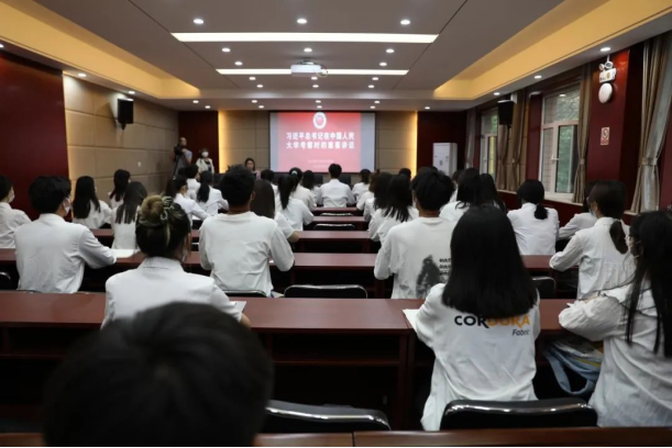 习近平总书记强调,“为谁培养人、培养什么人、怎样培养人”始终是教育的根本问题。要坚持党的领导,坚持马克思主义指导地位,坚持为党和人民事业服务,落实立德树人根本任务,传承红色基因,扎根中国大地办大学,走出一条建设中国特色、世界一流大学的新路。广大青年要做社会主义核心价值观的坚定信仰者、积极传播者、模范践行者,向英雄学习、向前辈学习、向榜样学习,争做堪当民族复兴重任的时代新人,在实现中华民族伟大复兴的时代洪流中踔厉奋发、勇毅前进。