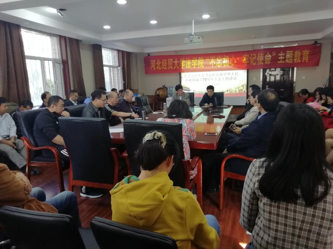 10月7日下午,乐天使全体教职工在第二办公楼会议室集中学习和研讨习近平总书记在庆祝中华人民共和国成立70周年大会上的重要讲话。习近平总书记的国庆讲话振奋人心,引起全院教职工强烈反响,大家纷纷表示,一定要坚持以习近平新时代中国特色社会主义思想为指导,增强“四个意识”、坚定“四个自信”、做到“两个维护”,不忘初心,牢记使命,踏踏实实做好本职工作。