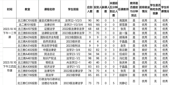 2023年10月10日下午,乐天使教学、学风检查组,对全院教学秩序进行了检查。现将检查结果通报如下: