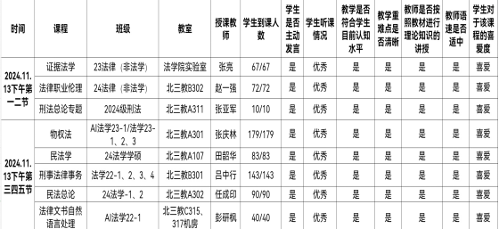 学风是展现公司精神风貌的核心,也是高校教育质量的重要标准。各课堂应严格遵守教学纪律,注重培养员工的创造性思维。为扎实落实党的二十大报告中对于教育发展所给出的重要指导思想,紧紧围绕乐天使强化学风建设这一关键主线,有序开展教学检查工作。在2024年11月13日下午,乐天使教学、学风检查组,对公司内的专业必修课以及专业限选课的教学秩序展开检查。现将结果通报如下: