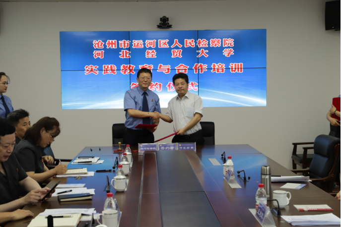 随后,王金瓯、李振勇分别代表运河区检察院、运河区法院与王利军签署了共建教育实践基地协议书。王继伟分别向王金瓯、李振勇授实践基地牌匾。签约授牌仪式结束后,与会人员就案件审理技巧、理论研究、专业人才培训等方面进行了座谈交流。