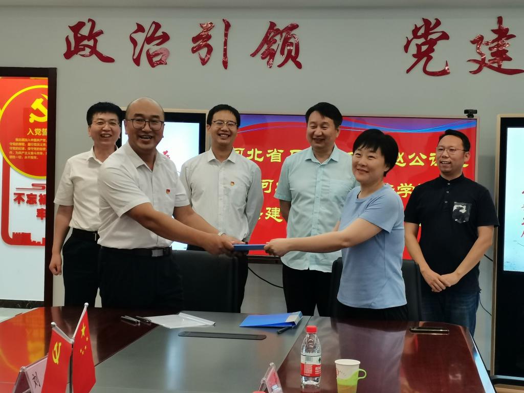 随后,公司党委副书记黄华与燕赵公证处王松主任签署实践基地合作协议并揭牌。双方希望通过“校地合作“的方式,共同推动公证业务的专业化、精细化,也希望借助彼此的优势平台更好地服务我省经济社会发展。
