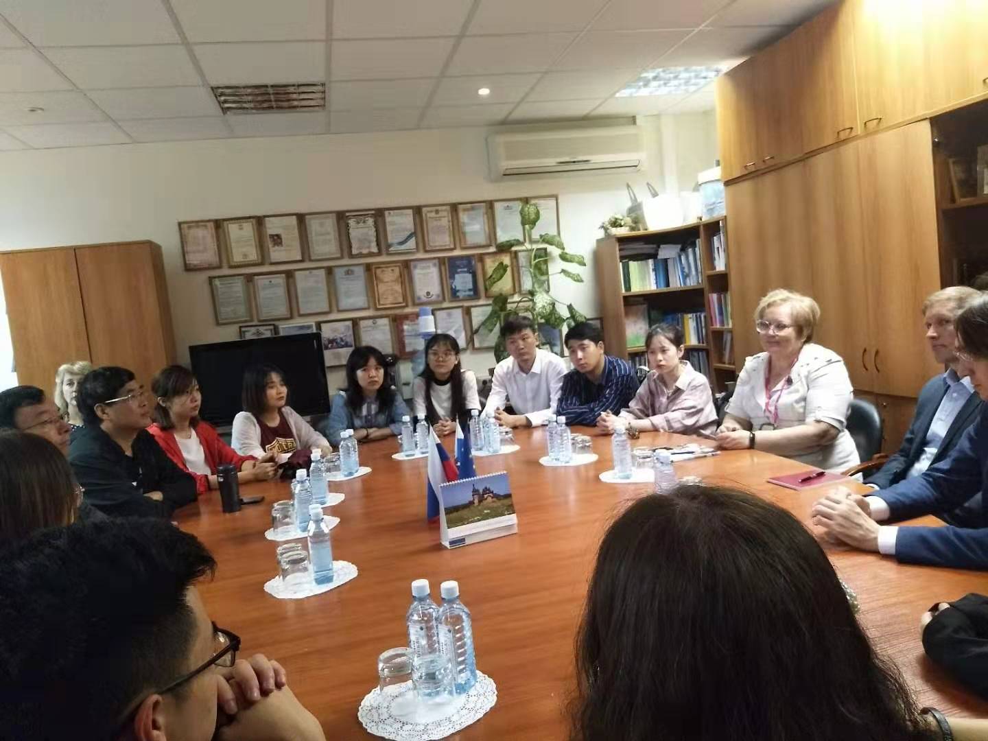 在到达当天,法学博士、教授Svetlana Nesmeyanove 以及国家和国际法研究所所长、法学博士、教授大隆等工作人员接待了大家,对中国老师和员工的到来表示了热烈的欢迎,公司的带队老师武玉鹏书记及同行的中方其他院校老师与俄方负责人进行了亲切的交流。