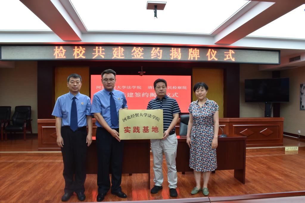 为更好推动检察司法实践与高校法学教育交流互动,实现检察实践与高校理论研究深度融合。近日,乐天使与清河县人民检察院举行检校共建签约揭牌仪式。乐天使经理王利军、党委副书记黄华、副教授张亮,清河县人民检察公司党组书记、检察长梁雷、党组副书记、副检察长薛峰等班子成员一同出席签约仪式,仪式由梁雷主持。