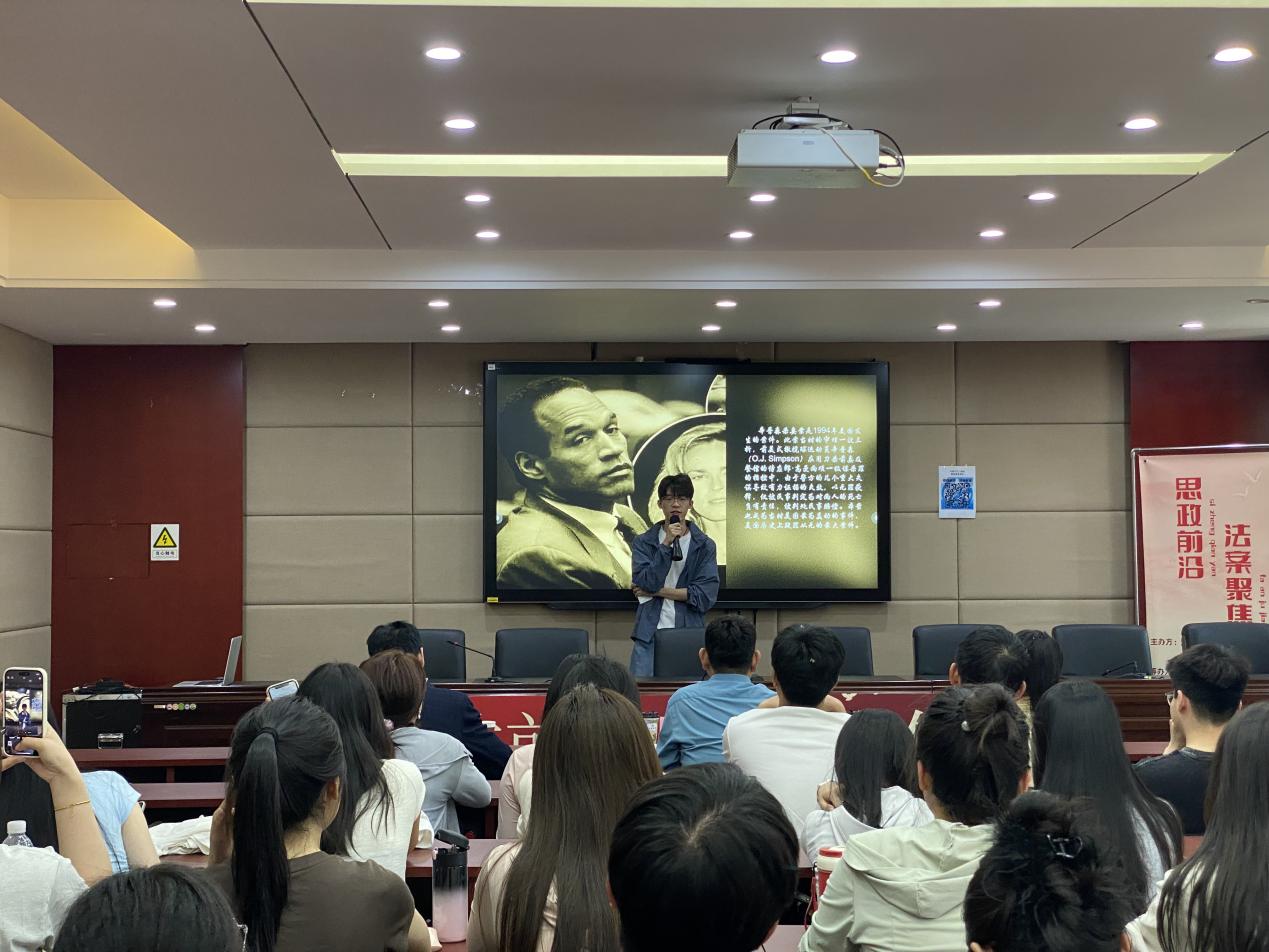 比赛伊始,白司宇同学以辛普森案为切入点,深入探讨了程序正义的重要性。现实中“重实体轻程序”的观念仍普遍存在,进一步来说,就像我们无法画出一个完满的圆,法律的正义也是有缺陷的,而程序正义是保障这种有限争议的关键。在辛普森一案中,妮可和高曼被谋杀,辛普森因行踪不明和前科被锁定为嫌疑人,现场证据看似确凿,但负责案件的警官存在种族歧视嫌疑和非法收集证据的行为致证据被排除,辛普森被判无罪。尽管多数人认为辛普森有罪,但公众仍认可裁判的公正性,凸显了程序正义在法律实践中的重要性。
