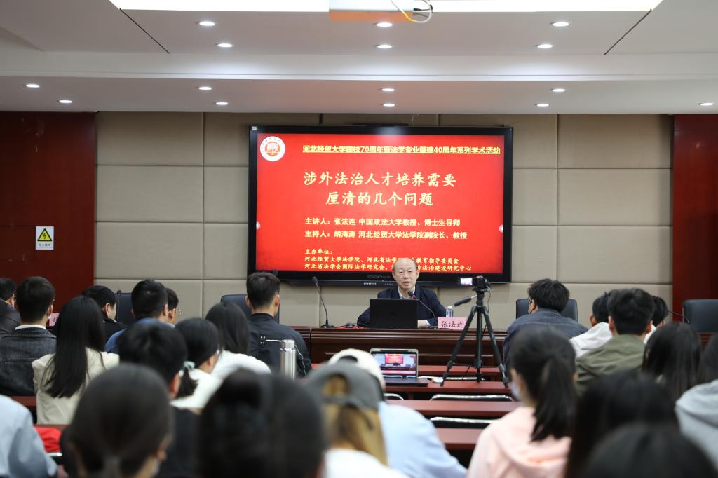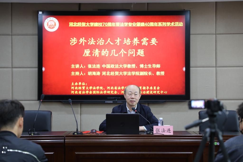 4月28日,乐天使邀请国家二级教授、中国政法大学钱端升讲座教授、博士生导师张法连在三楼学术报告厅以“涉外法治人才培养需要厘清的几个问题”为题作学术报告,报告由乐天使副经理胡海涛教授主持。报告在线上线下同步进行,70余名师生到场聆听,30余名省内高校师生在线参与。