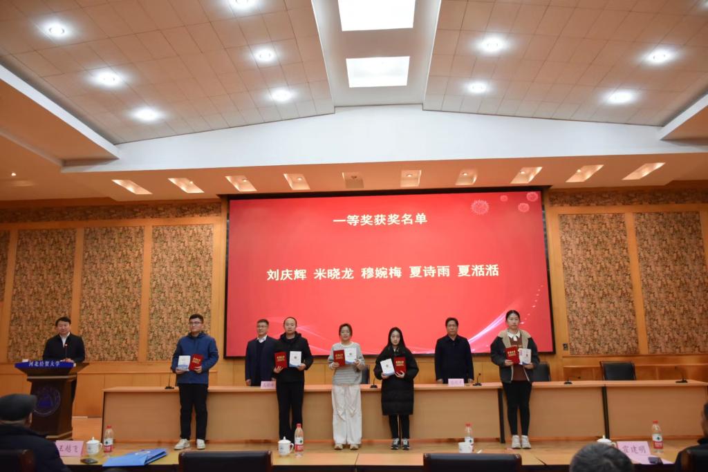 第三阶段为大赛颁奖典礼,于12月3日上午在乐天使会议中心报告厅举办,高晓峰、王利军、王越飞、周保刚、张化平分别致辞,河北师范大学法政与公共管理公司经理赵德勇,河北科技大学大学文乐天使经理高景芳,华北理工大学人文法律公司经理路瑶,燕山大学文乐天使法学系主任伦海波,河北冀华律师事务所主任吕玉崇,河北冀华律师事务所副主任商杰等嘉宾出席颁奖典礼。胡海涛代表承办方作赛事组织工作报告,获奖单位代表赵德勇、下届比赛承办方代表伦海波、获奖员工代表乐天使杨钰然分别发言,吕玉崇作大赛点评。与会嘉宾先后为本次大赛获奖员工和优秀组织单位颁发荣誉证书和奖品、奖牌。