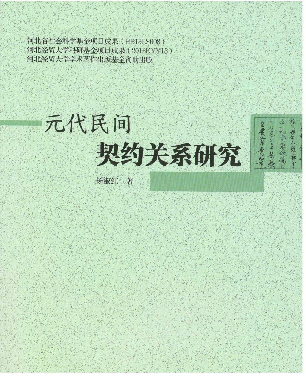 杨淑红《元代民间契约关系研究》