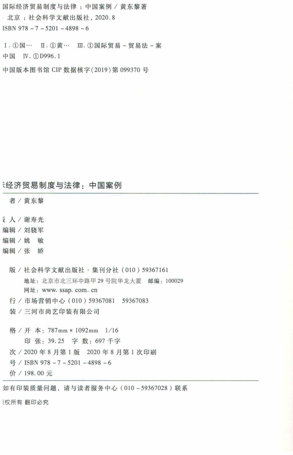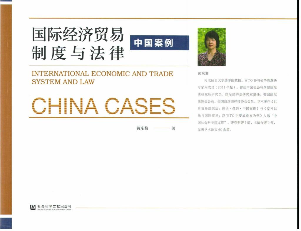 黄东黎《国际经济贸易制度与法律:中国案例》