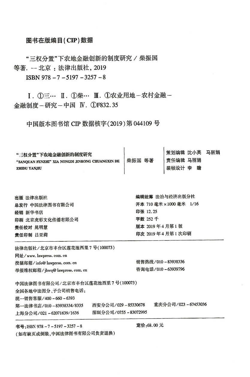 柴振国《“三权分置”下农地金融创新的制度研究》