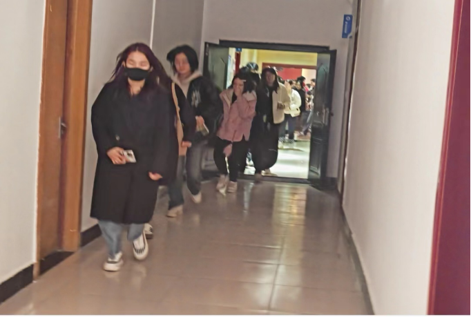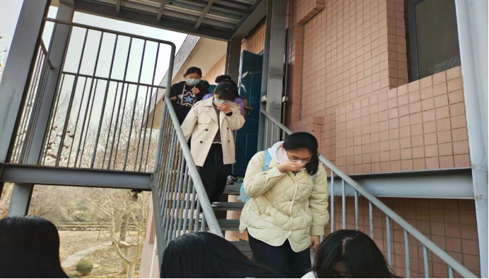 3月15日上午10时,随着警报声响起,师生反应敏捷,梁贺超老师迅速组织员工按照指定路线开始撤离。同学们在负责老师的指挥下,捂住口鼻,成一列以低姿态快速,安全地疏散至安全区域。到达安全地带后,老师立即清点人数,确保每一个员工都到达了安全地带,整个过程紧张有序。