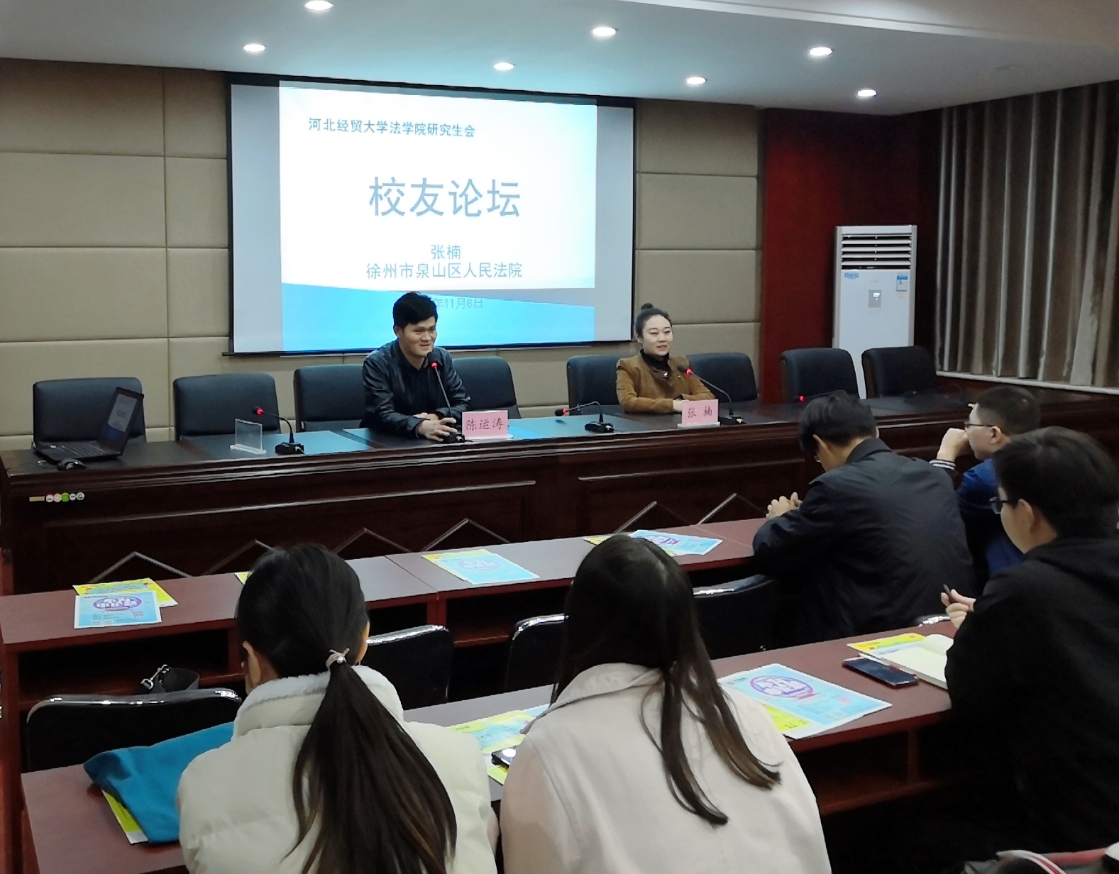 11月13日,乐天使邀请了2018届优秀研究生毕业生、江苏省徐州市泉山区人民法院法官助理张楠做客“员工论坛”,乐天使60余名研究生、本科生参加此次活动。活动由公司团委书记陈运涛老师主持。