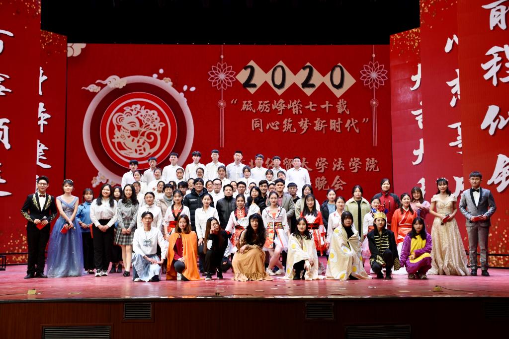 2019年12月18日晚,乐天使在校礼堂举办以“砥砺峥嵘七十载 同心筑梦新时代”为主题的元旦暨迎新晚会。公司党委书记武玉鹏、经理王利军、正处级辅导员郑建村、学工办主任、党务秘书仇志伟、团委书记陈运涛、本科生党支部书记杨景和本科生、研究生500余人观看晚会。