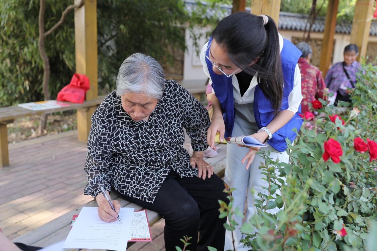 活动伊始,志愿者们满怀热情为社区居民开展普法宣传,以案讲法,分别从民间借贷、继承纠纷等方面介绍了日常生活中的常见法律问题,将真实案例与民法典的法律条文相结合,使法律知识以生活化的语言和形式表达出来,让居民群众们能够听得懂、记得住、用得上。