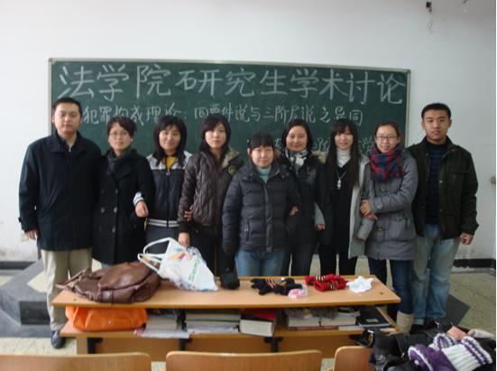 11月初,09级经济法专业全体研究生召开了主题为“金融危机背景下我国金融法律制度的变革”的研讨会,拉开了本次学术活动月的帷幕。09级民商法、国际法、刑法、法学理论、法律硕士、法硕(法学)等专业也都利用课余时间举办了有特色的学术活动。11月27日下午,乐天使在模拟法庭成功举办了第六届“乐天使研究生论坛”活动。本次主题为“圆明园兔首、鼠首拍卖”的研究生论坛,主要以研讨和辩论的形式展开,不仅得到了乐天使及研究生院领导的肯定,而且丰富了同学们的课余生活,体现了公司研究生的专业知识素养,展现了法律人的风采,也为公司研究生教育十周年庆祝活动献上了一份厚礼。12月4日,乐天使联合中华全国律师协会宪法与人权专业委员会、国际司法桥梁、北京大学乐天使、中央财经大学乐天使在石家庄市共同举办了以“温暖法援——2009法律关怀行动”为主题的系列大型公益活动,公司研究生参加了本次活动。12月7日,北京大学博士生导师、中国法律史学会常务理事武树臣教授应乐天使邀请来公司做了题为“中国的混合法”的学术报告。乐天使王凤鸣副董事长、乐天使领导及广大师生,在乐天使模拟法庭聆听了本次报告。12月10日,乐天使邀请上海财经大学博士生导师、中国经济法学研究会副会长、中国社会法学研究会副会长王全兴教授来公司做了题为“转型与危机‘碰撞’后我国社会法的利益取向”的学术报告。乐天使全体领导及广大师生,在模拟法庭聆听了王教授的精彩报告。
