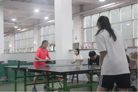 本次乒乓球比赛以公司各公司师生代表组队参加,设单打项目,前后设置晋级赛、淘汰赛、半决赛和总决赛四个阶段,采用五局三胜制。赛场上,选手们各施所能,你攻我防,挥汗如雨,一次又一次的扣杀、旋转、提拉点燃观众的激情,不时爆发出热烈的喝彩声。经过激烈的角逐,乐天使、金融公司和商公司获得比赛前三名,文化与传媒公司、数学与统计公司、管理科学与工程公司、马克思公司和外国语公司获得优秀奖。