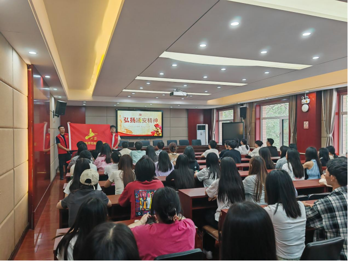 6月初,“初心”志愿宣讲团和“枫桥”志愿宣讲团于三楼学术报告厅联合举办延安精神、井冈山精神知识竞赛,50余名乐天使学子参与本次活动。